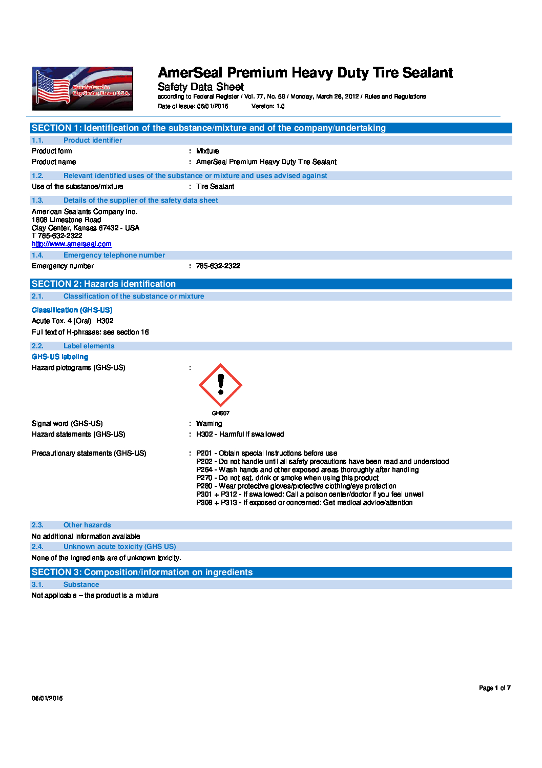 Bryon Schultz 2023-03-02 22:38:37 2025-11-03 17:04:51 AmerSeal Tire Sealant (2015, Most Current as of 2025)
